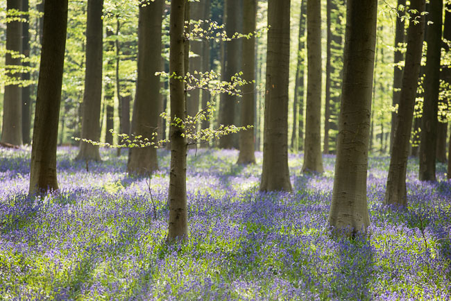 Ik weet niet of deze locatie al op de lijst met wereldwonderen staat maar wat mij betreft mag deze erbij. Slechts een paar weken in het jaar is dit schouwspel zichtbaar: Een tapijt van blauwpaarse boshyacinten temidden van beuken en andere bomen. Samen met een vriend, Marnix ben ik van het oranje Nederland op 30 april vertrokken naar Halle, net onder Brussel, waar het Hallerbos is. Vorig jaar zijn we ook geweest en toen was het al mooi. Deze keer waren de weeromstandigheden beter en ook de timing van de natuur. De combinatie van licht dat nog net door de beukenbladeren heen schijnt en de grond bezaaid met blauwpaarse en witte bloemen is uniek. We waren trouwens niet de enige die dit schouwspel zagen. Vele wandelaars en vooral veel mede-fotografen waren aanwezig.