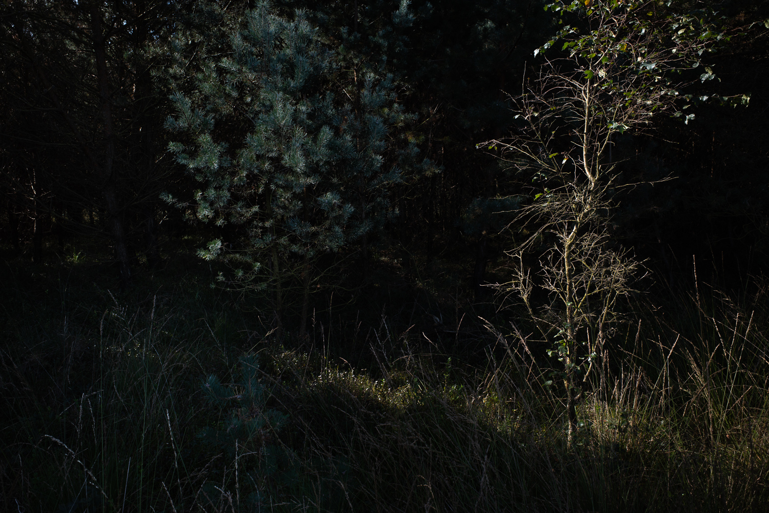 Daarover gaan deze fotowerken. Gemaakt in de natuur dichtbij de plek waar ik was. Het is als het kijken vanuit de duisternis naar het licht dat tussen de bomen door de grond aanraakt en daar een klein beetje warmte afgeeft. Dat kleine beetje blijkt groot. Dat blijkt een houvast. Een houvast aan de natuur dichtbij.